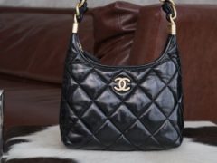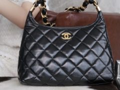 CHANEL女包官网旗舰店 新款24高级手工坊 大号黑色Hobo流浪包
