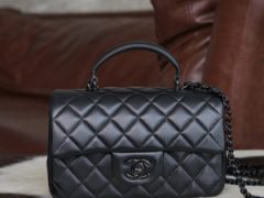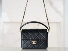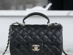 CHANEL香奈儿女包官网旗舰店新款24K小号黑色口盖包配以手柄