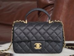 CHANEL香奈儿包包新款 24K CF手柄款经典系列 迷你黑色口盖包