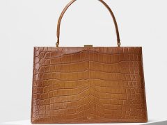 Celine 赛琳CLASP中号金棕色复古做旧鳄鱼皮手袋
