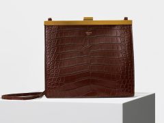 Celine 赛琳 CLASP中号木色鳄鱼小羊皮衬里皮手袋