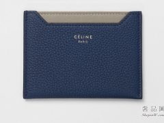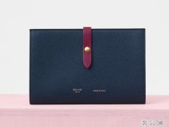 Celine Strap大号钢铁蓝粒面小牛皮拼亮泽小牛皮多功能钱包