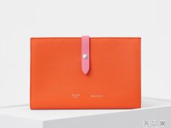 Celine Strap大号橙色粒面小牛皮拼亮泽小牛皮多功能钱包