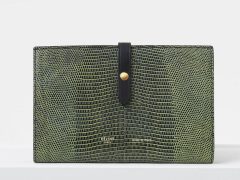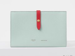 Celine Strap大号翠翠玉绿粒面小牛皮拼亮泽小牛皮多功能钱包
