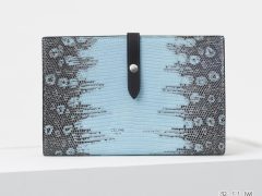 Celine Strap大号泳池蓝蜥蜴皮拼亮泽小牛皮多功能钱包