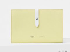 Celine Strap大号柠檬黄粒面小牛皮拼亮泽小牛皮多功能钱包