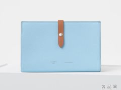 Celine Strap大号泳池蓝粒面小牛皮拼亮泽小牛皮多功能钱包