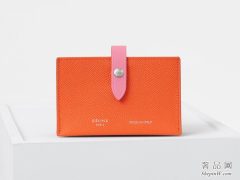 Celine Strap橙色粒面小牛皮拼亮泽小牛皮风琴褶卡包