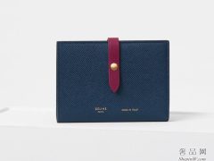 Celine Strap中号钢铁蓝粒面小牛皮拼亮泽小牛皮多功能钱包