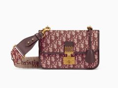 迪奥 Dior Dioraddict酒红色Dior Oblique提花帆布手提包 点缀小母牛皮
