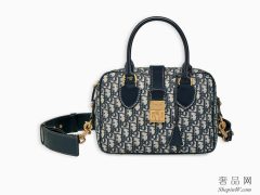 迪奥Dior 蓝色光滑小牛皮 Oblique标志性帆布小保龄球包