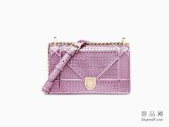 迪奥dior Diorama粉红色金属光泽Microcannage迷你藤格纹图案小牛皮小手提包
