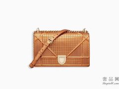 迪奥dior“Diorama”榛果色金属光泽Archicannage藤格纹图案粒面触感小牛皮小手提包