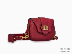 D-Fence红色光滑小牛皮斜挎包,搭配复古金色金属DIOR带扣