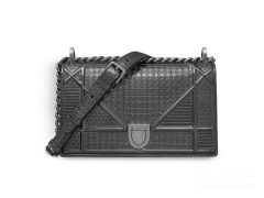 迪奥“DIORAMA”缟玛瑙黑色金属光泽小牛皮小手提包 镀钌金属徽章锁扣