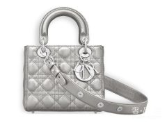 迪奥“Lady Dior”银色粒面触感皮革手提包 “Cannage”藤格纹缝线