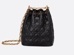 迪奥Dior Miss Dior黑色藤格纹柔软小羊皮水桶包 亮面复古金色金属