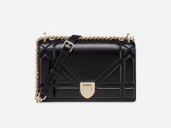迪奥Dior Diorama黑色Archicannage藤格纹图案绗缝小羊皮手提包