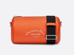 迪奥Dior“Roller”橘色粒面触感小牛皮和“Christian Dior Atelier”印花手拿包