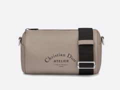 Dior“Roller”灰褐色粒面触感小牛皮和“Christian Dior Atelier”印花手拿包