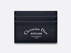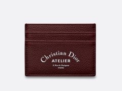 dior 巴黎蓝 酒红色粒面触感小牛皮和“Christian Dior Atelier”印花卡套