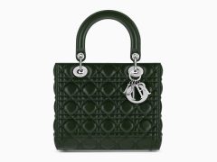 迪奥戴妃包 Cannage藤格纹 Lady Dior绿色藤格纹小羊皮手提包