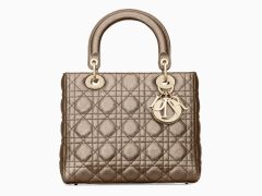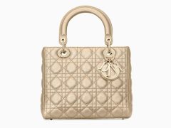 迪奥戴妃包 Lady Dior淡金色金属光泽藤格纹粒面触感小牛皮手提包