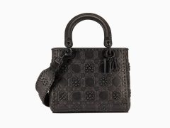 迪奥包包价格和图片 Lady Dior黑金色金属光泽藤格纹粒面触感小牛皮手提包