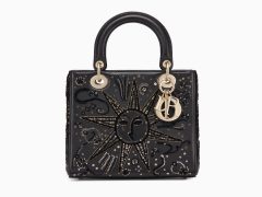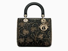 迪奥ladydior戴妃包 Lady Dior黑色光滑小牛皮手提包 缀丝线和亮片 刺绣图案