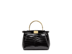 芬迪Fendi 光面黑色鳄鱼皮手提包 MINI PEEKABOO