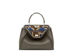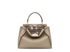 芬迪Fendi PEEKABOO REGULAR 罗马皮革岩石色蟒蛇皮手提手袋