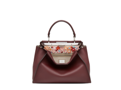 芬迪Fendi 粉灰色小牛皮酒红色硬隔 PEEKABOO手袋8BN290_3ZN_F09QA