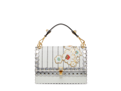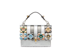 芬迪Fendi KAN I手袋中号 银色层压皮革手袋 缀有皮革嵌片