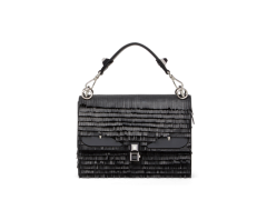 芬迪Fendi KAN I手袋中号 黑色小牛皮手袋全面覆盖配色流苏
