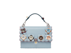 芬迪Fendi KAN I手袋中号 粉蓝色小牛皮手袋 转锁开合