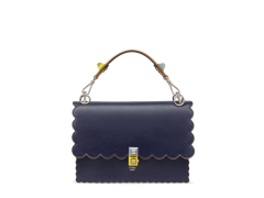芬迪Fendi KAN I手袋中号 蓝莓色小牛皮手袋缀有皮革嵌片