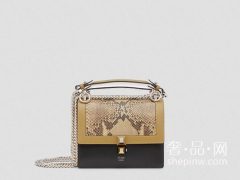 芬迪Fendi KANI手袋 MINI 时装秀款黑棕色牛皮配岩石色蛇纹皮革链条包