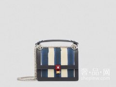 芬迪Fendi KanI系列手袋MINI 时装秀款 蓝白条纹 午夜蓝皮革镶边
