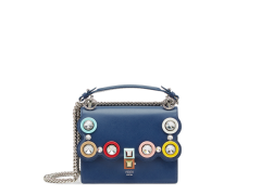芬迪Fendi蓝色皮革 KAN I 手袋MINI 扇形边缘饰珠宝贴花