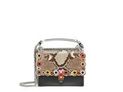 芬迪Fendi 黑色皮革和白色蟒蛇皮KAN I 手袋MINI