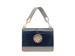 芬迪Fendi亮深蓝色鳄鱼皮和海草色小牛皮 KAN I LOGO手袋中号