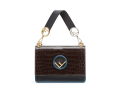 芬迪Fendi 亮棕色鳄鱼皮和黑色小牛皮KAN I LOGO手袋中号