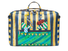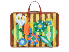 芬迪Fendi 长方形双色马克笔风格条纹图案 男士旅行袋 花朵和云彩造型