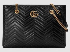 古驰Gucci 黑色绗缝皮革 GG Marmont系列绗缝中号购物袋