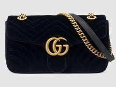 古驰Gucci GG Marmont系列黑色天鹅绒肩背包443497 K4D2T 1000
