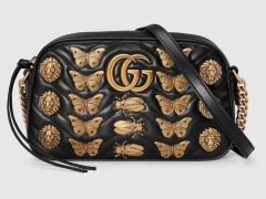 Gucci GG Marmont动物造型古铜色铆钉黑色真皮肩背包
