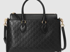 古驰 gucci柔软黑色Signature手提购物袋409534 0DM1G 1000