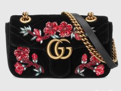 古驰Gucci GG Marmont刺绣天鹅绒迷你手袋446744 K4DTT 1093