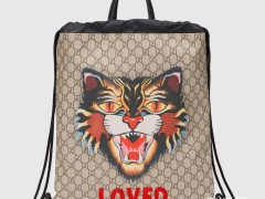 Gucci 猫印花柔软GG高级人造革拉绳背包 473872 9AV2T 8652