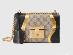 Gucci官网 Padlock 米色/乌木色GG 皮革肩背包 432182 D8TAG 8752